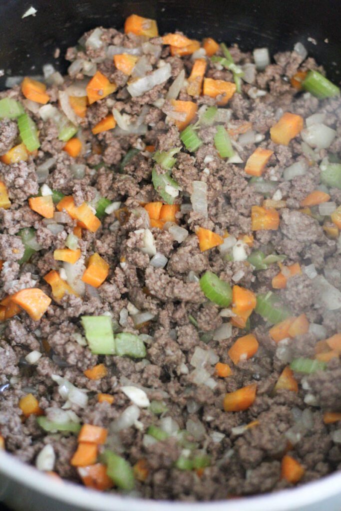 Carrots/celery/onion/garlic: these vegetables add so much flavour to the beef filling.